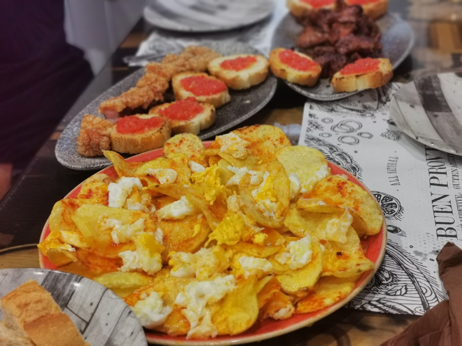 Huevos rotos con torreznos